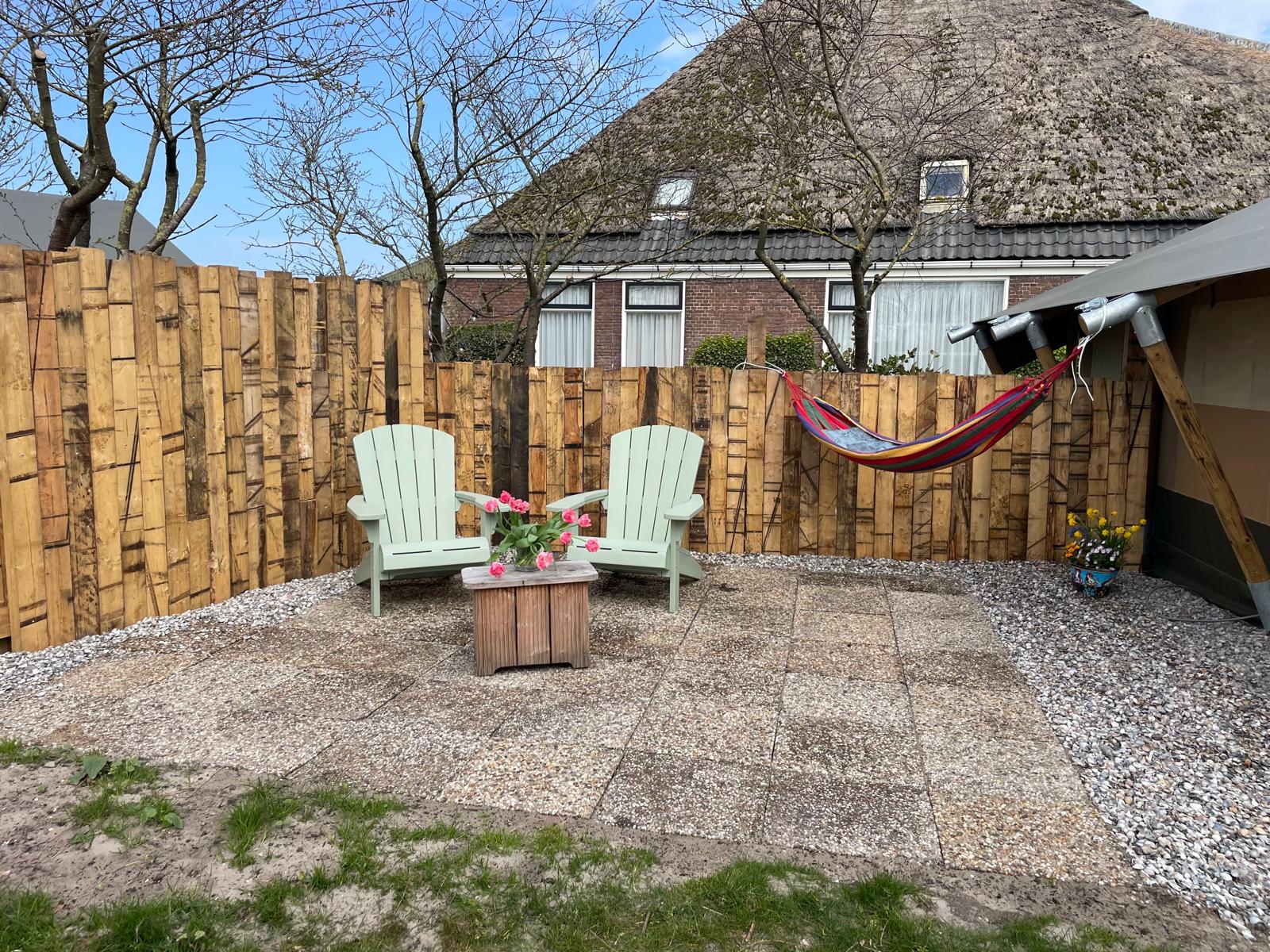 Übernachten Sie in einem komfortablen Safarizelt in ruhiger Lage in den Dünen. Auf dem Campingplatz Helmzicht in Julianadorp erwartet Sie ein möbliertes Zelt für zwei Personen mit eigener Küche, Terrasse und Hängematte. Der Strand ist nur 10 Minuten entfernt.