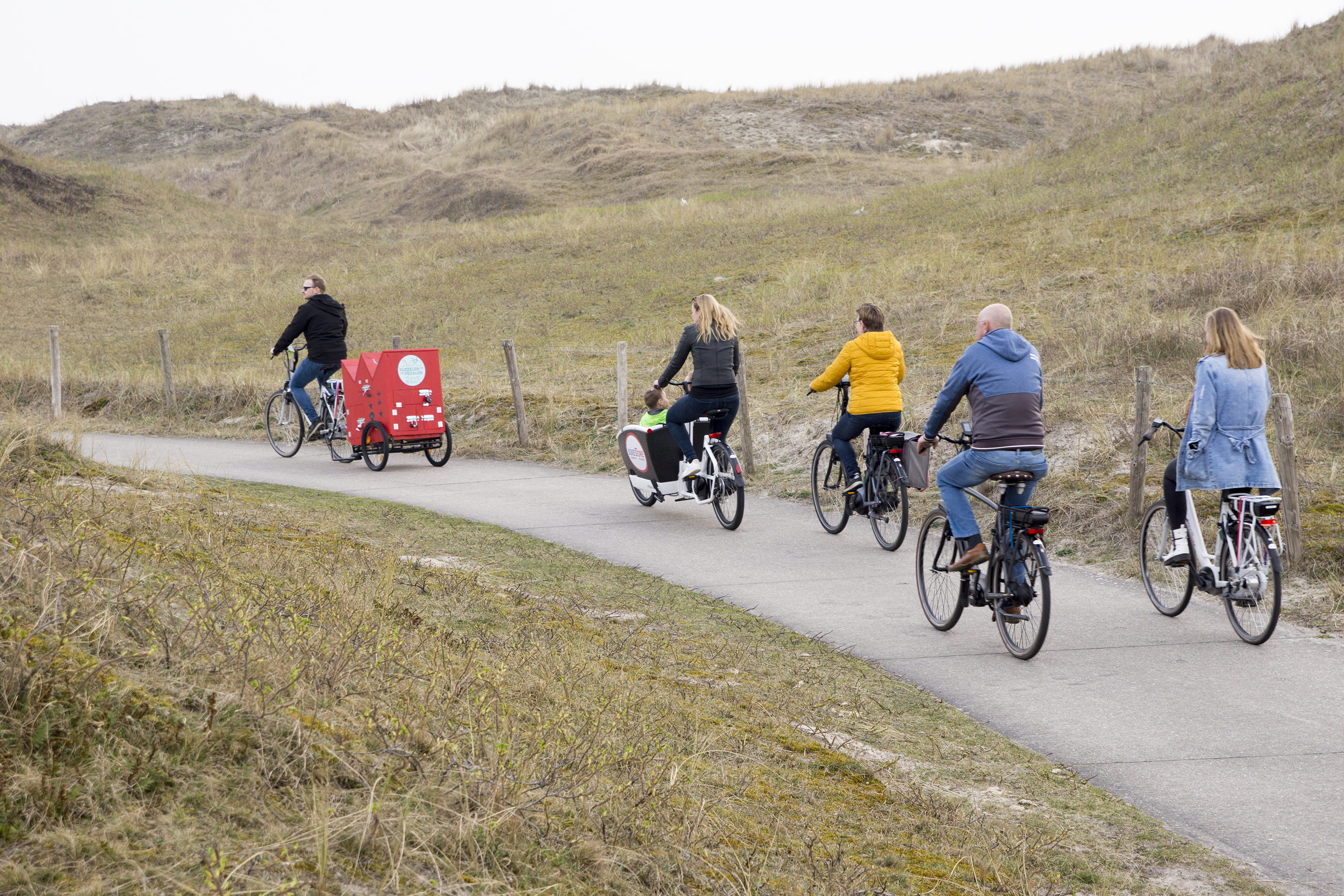 You can attach the cart to your own bike or rent one. Prefer an electric bike? That's also possible. The escape takes about 2 to 3 hours and is suitable for all ages. Ideal for friends, families, or colleagues.