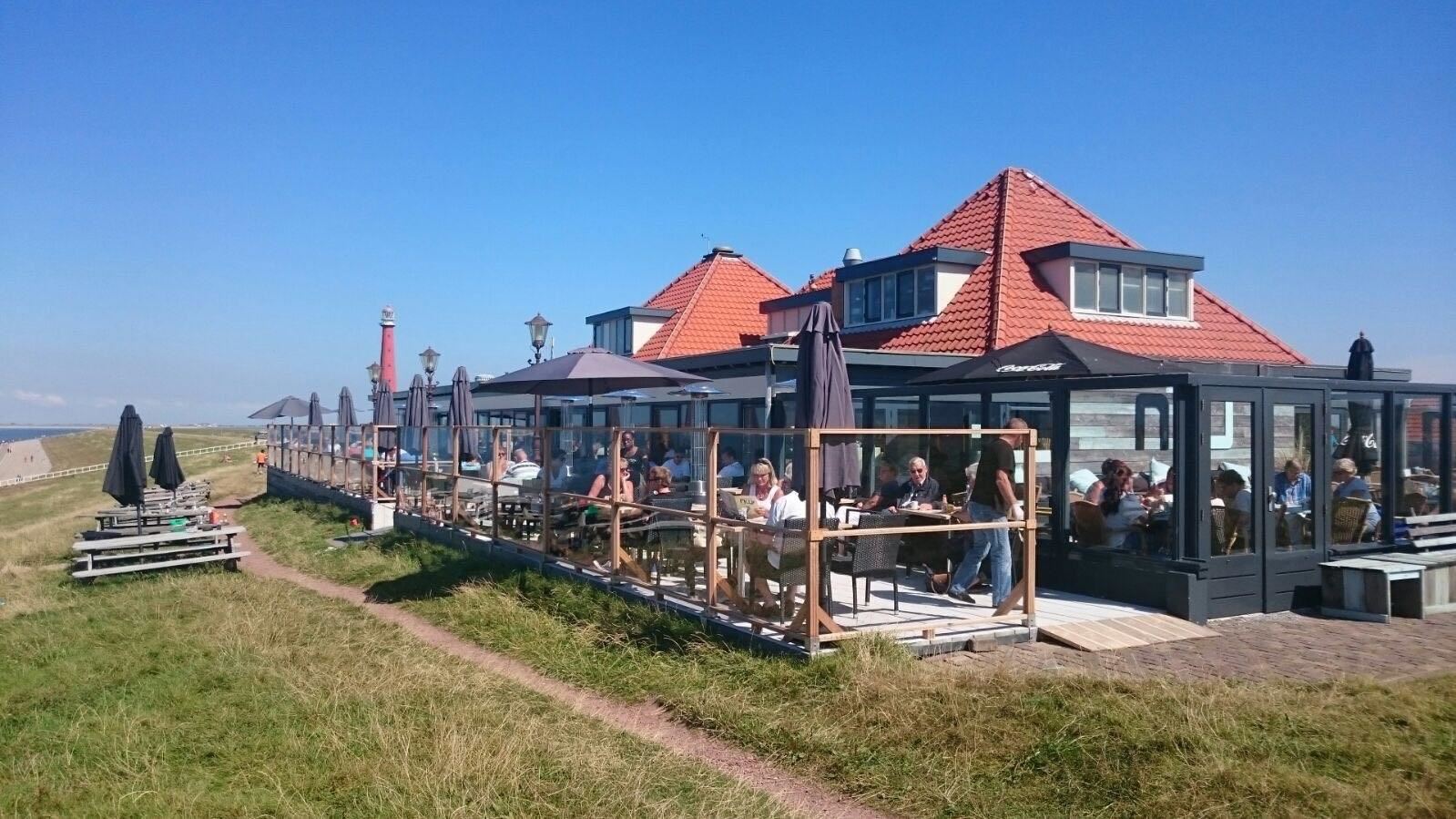 Op warme dagen is het terras dé plek. Met een koel drankje en uitzicht over de zee spot je misschien wel een zeehond. In de serre blijf je ook bij kou of wind comfortabel genieten.